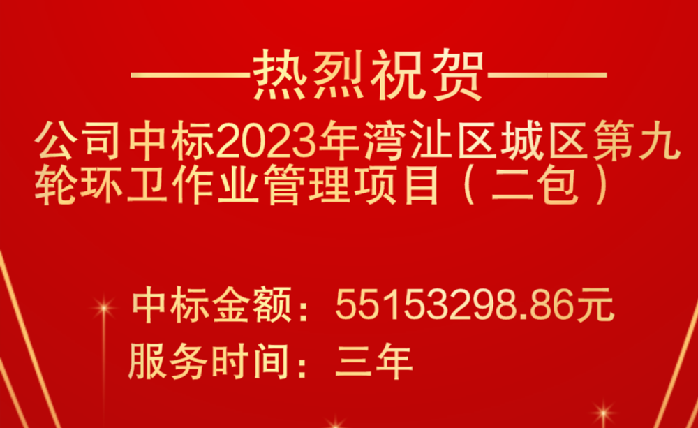 喜讯|公司中标2023年湾沚区城区第九轮环卫作业管理项目(二包)